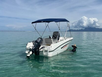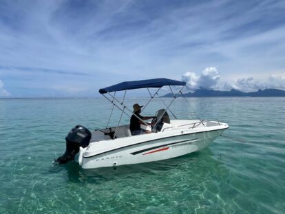 Le lagon de Moorea étant très spécial et pouvant se révéler dangereux même pour un pilote expérimenté : chenal étroit, manque de balises non remplacées et champs de coraux, notre capitaine vous accompagne la première heure de votre location pour vous indiquer comment éviter les dangers et vous montrer les meilleurs spots.